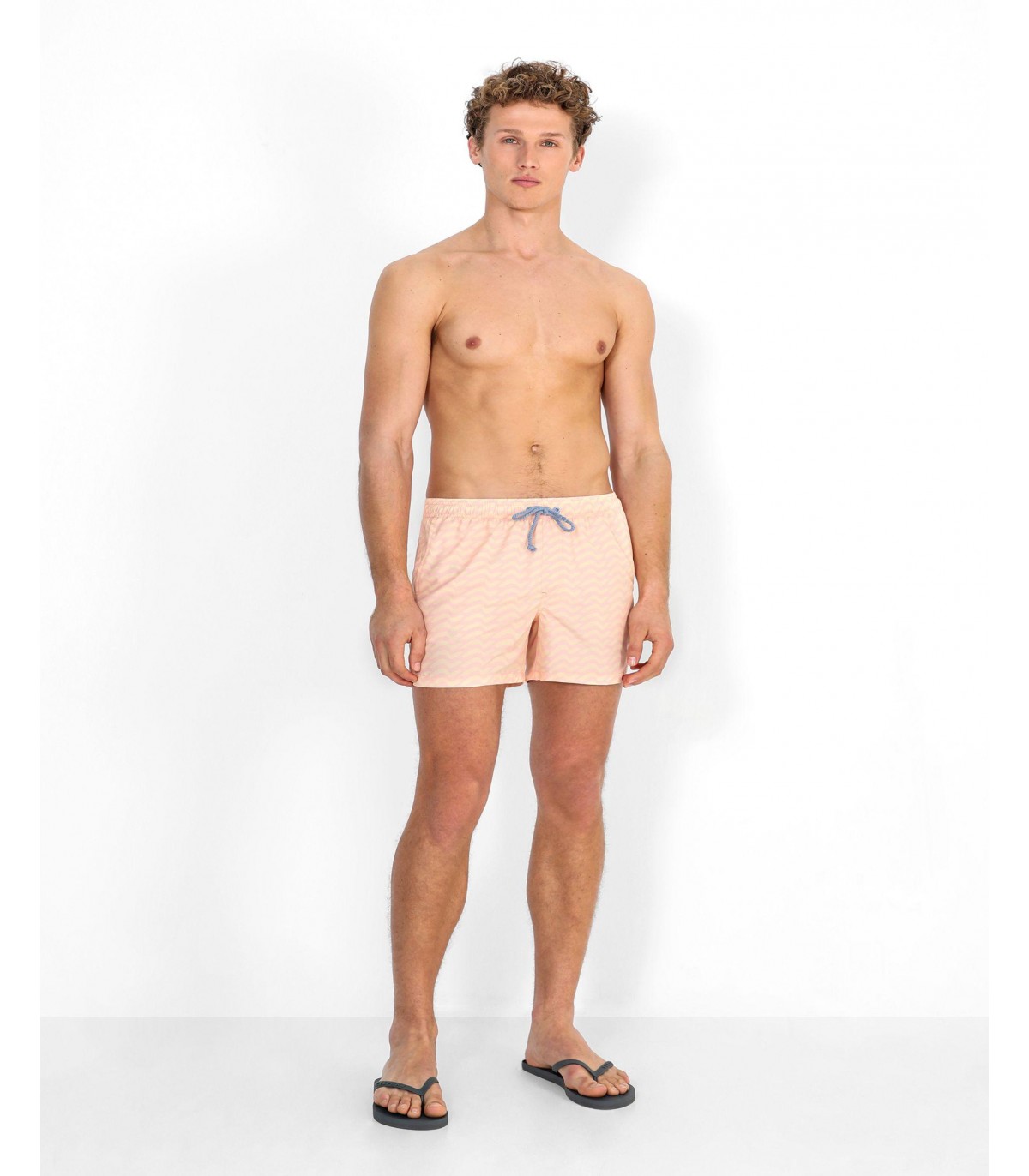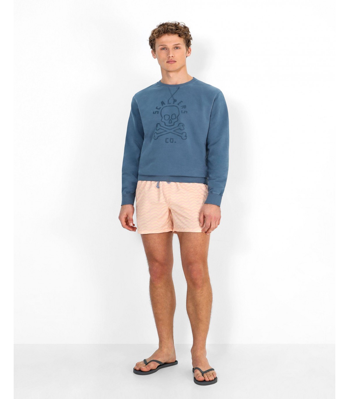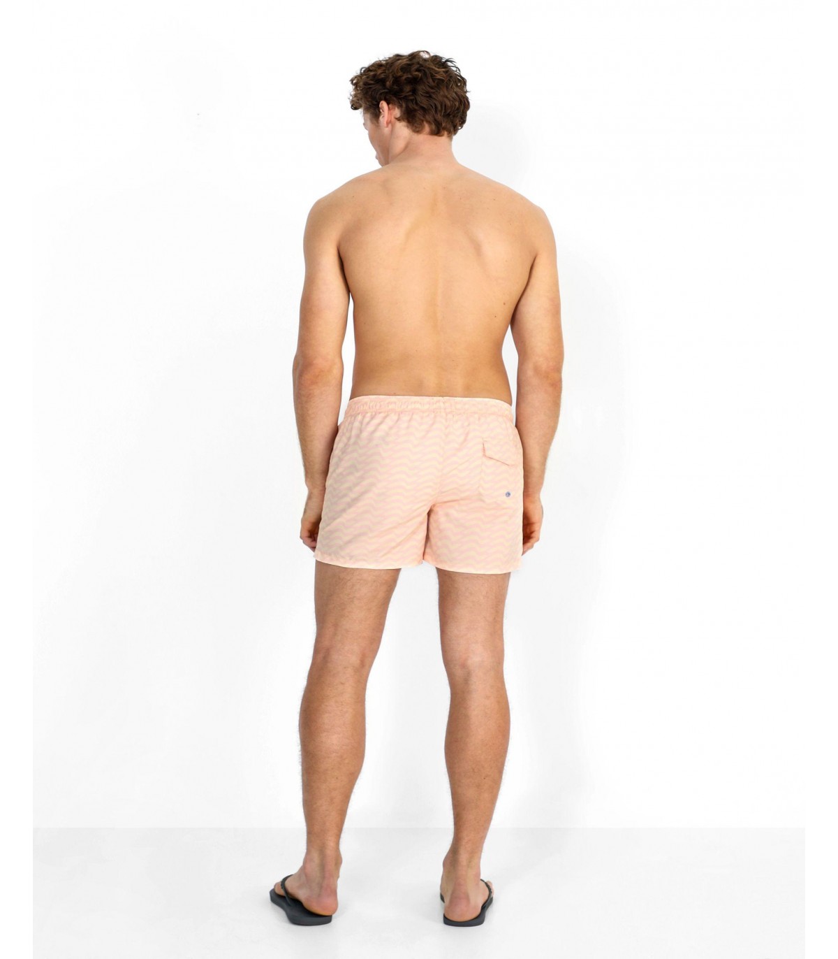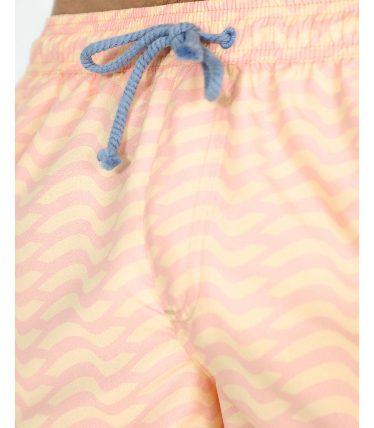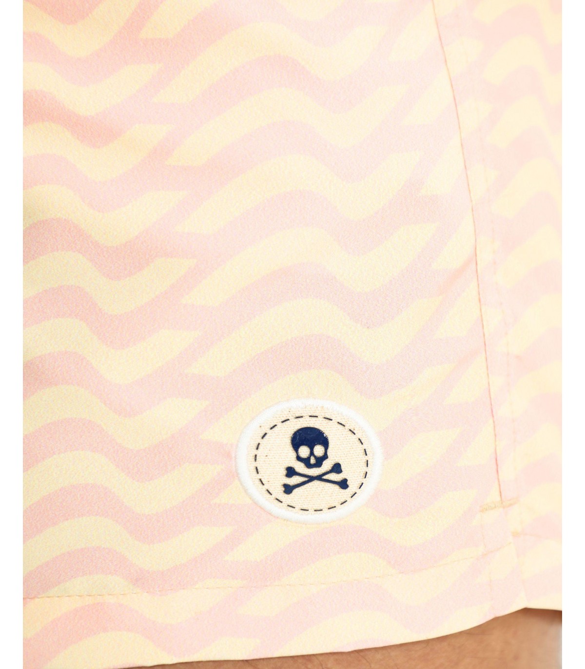 Bañador con estampado de ondas confeccionado en tejido de poliéster. Corte Regular Fit, cierre con cordón y velcro. Detalle de calavera engomada en el bajo y bolsillos laterales y trasero.