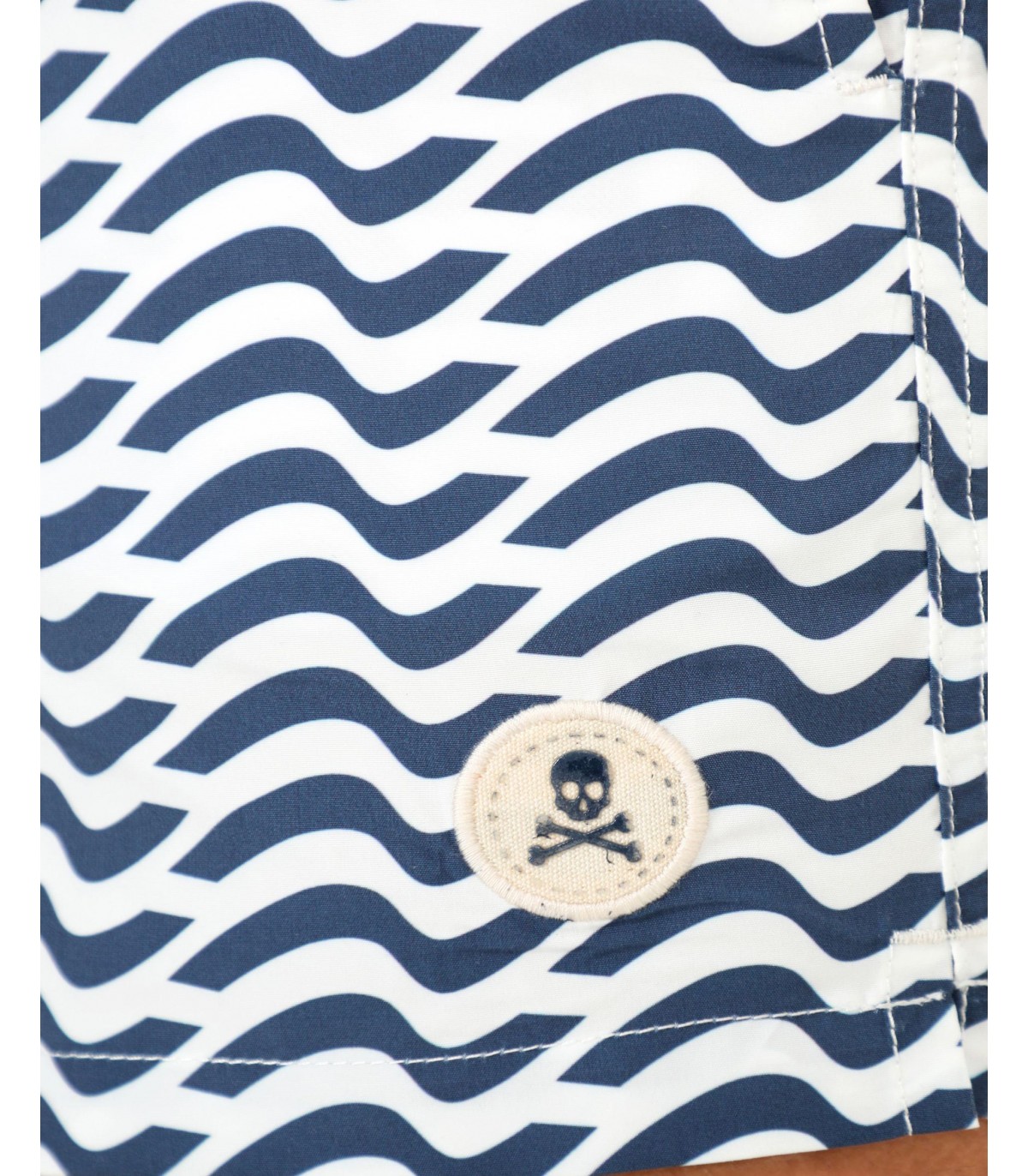 - Bañador con estampado de ondas confeccionado en tejido de poliéster. Corte Regular Fit, cierre con cordón y velcro. Detalle de calavera engomada en el bajo y bolsillos laterales y trasero.