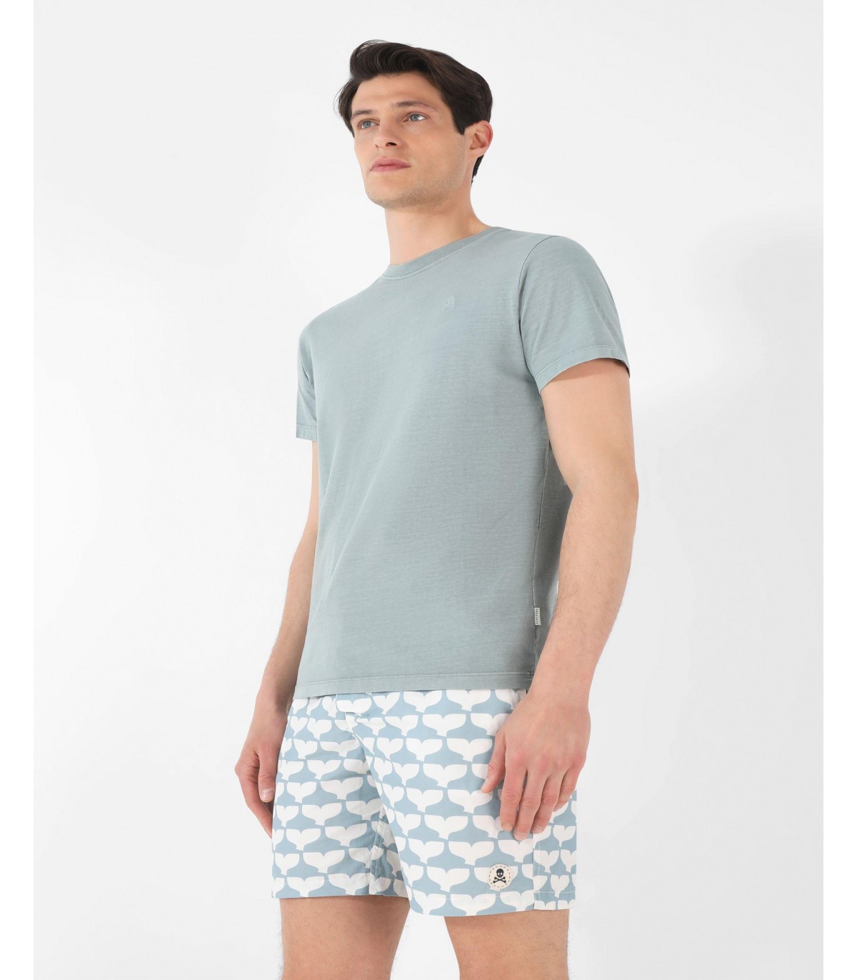 - Bañador estampado confeccionado en tejido de poliéster. Corte Regular Fit, cierre con cordón y velcro y detalle de calavera engomada en el bajo.