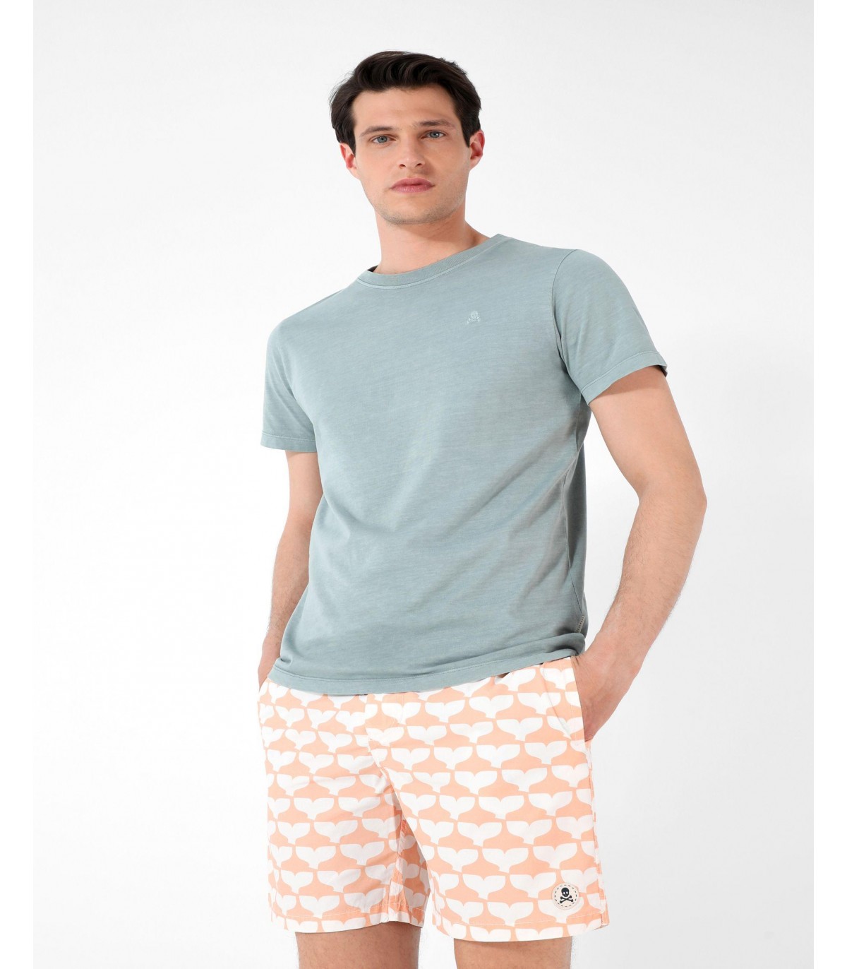 - Bañador estampado confeccionado en tejido de poliéster. Corte Regular Fit, cierre con cordón y velcro y detalle de calavera engomada en el bajo.