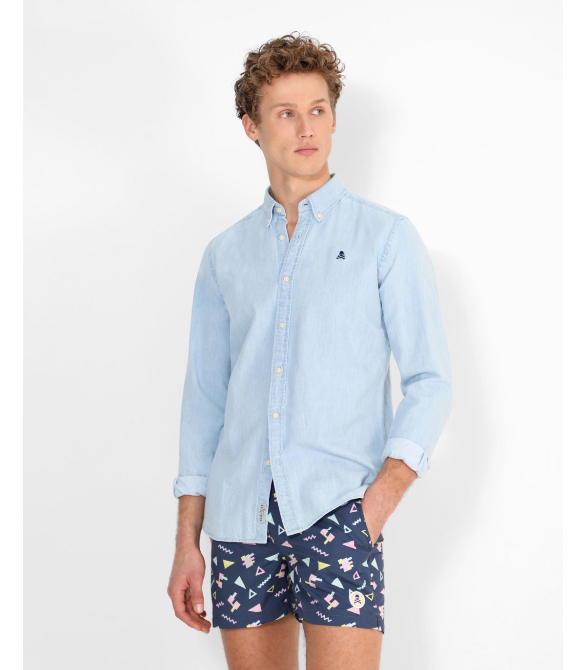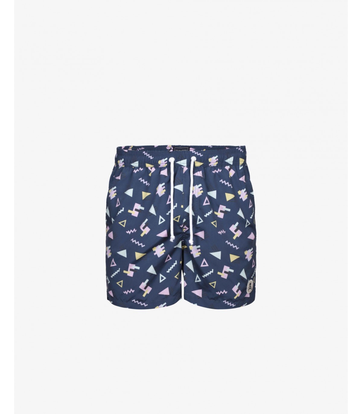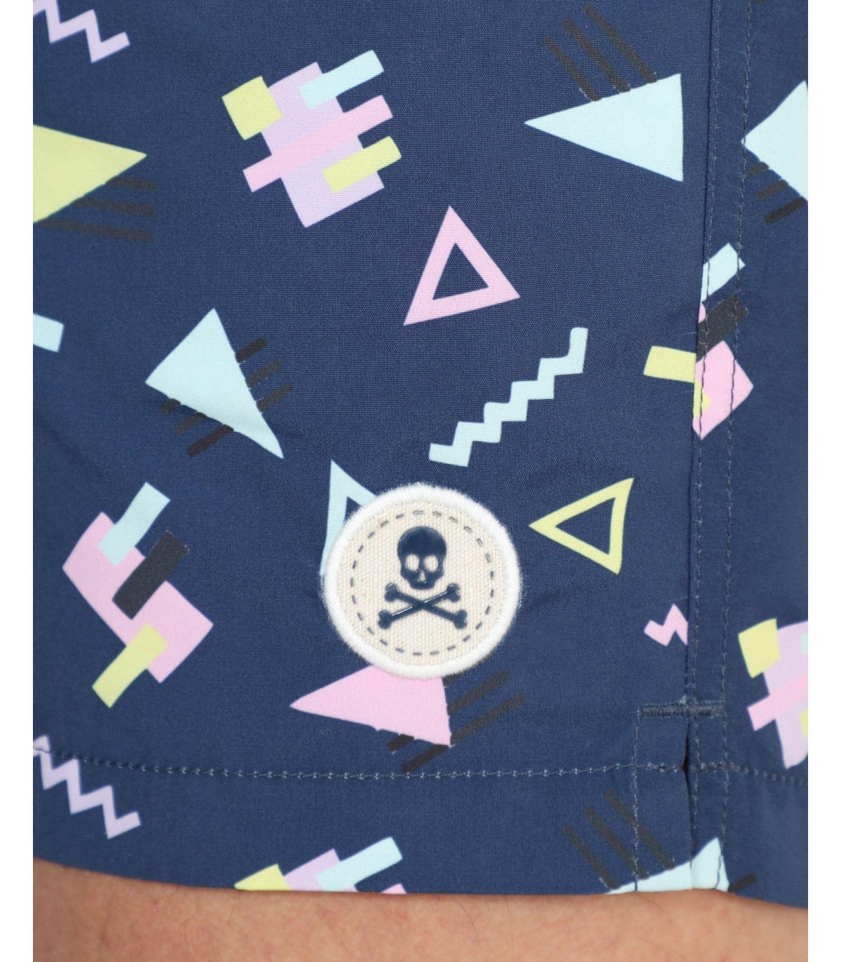 Bañador con prints geométricos confeccionado en tejido de poliéster. Corte Regular Fit, cierre con cordón y velcro y detalle de calavera engomada. Bolsillos laterales y traseros.