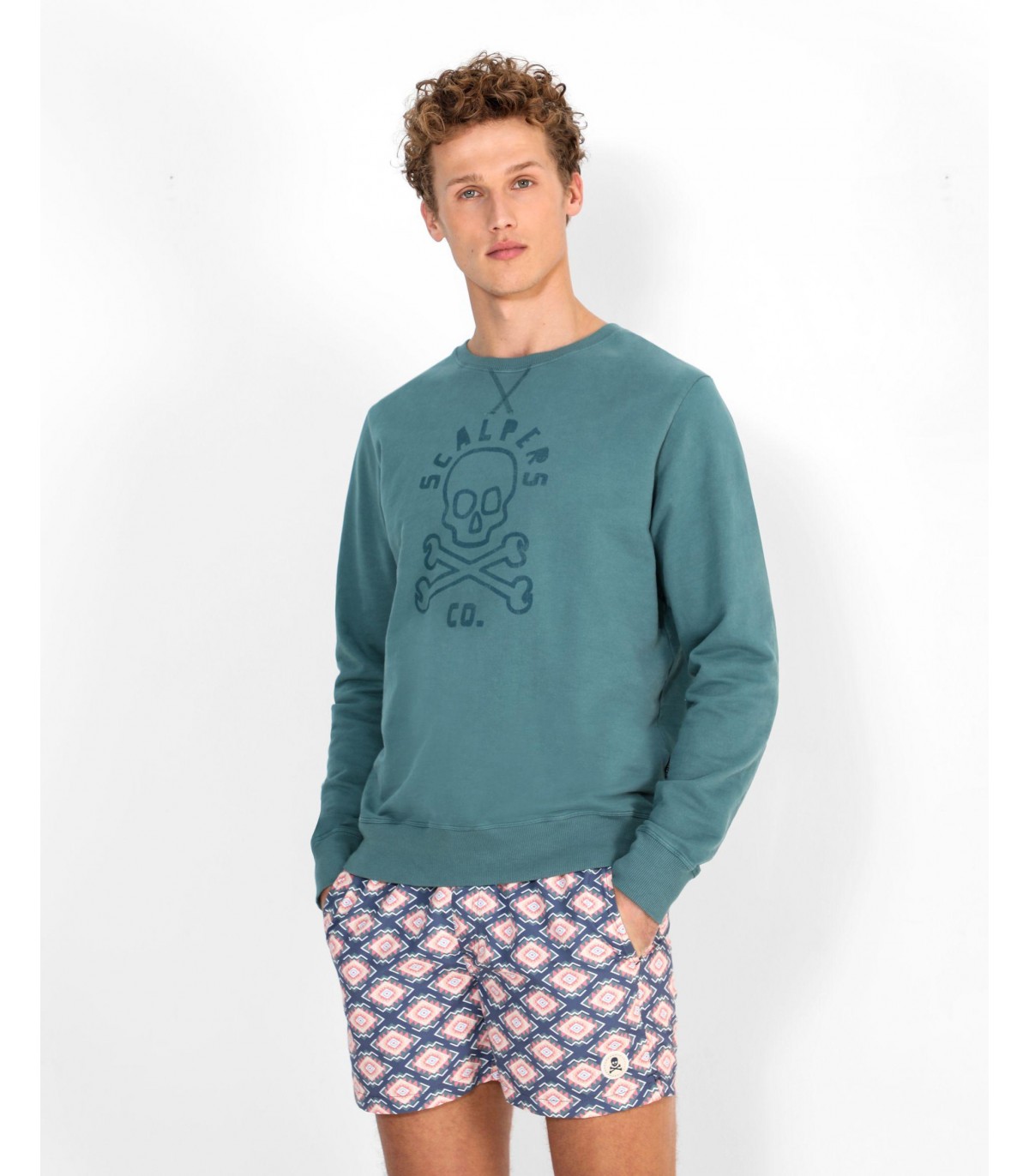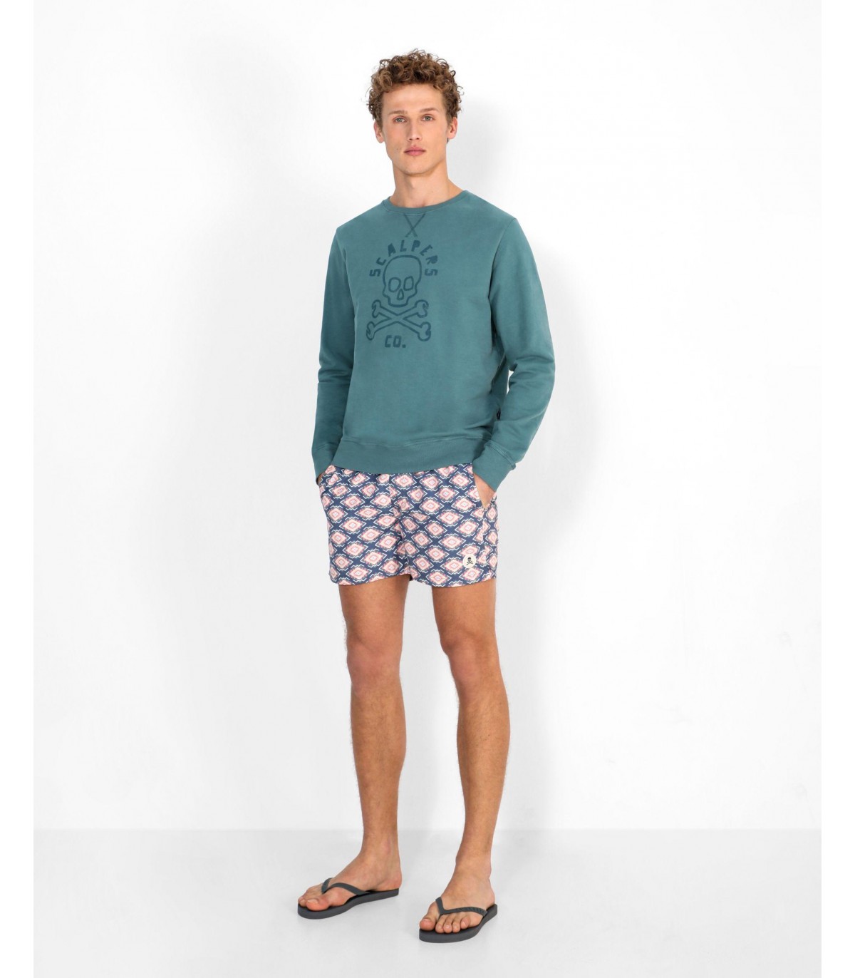 - Bañador con estampado de ikat confeccionado en tejido de poliéster. Corte Regular Fit, cierre con cordón y velcro y detalle de calavera engomada en el bajo.