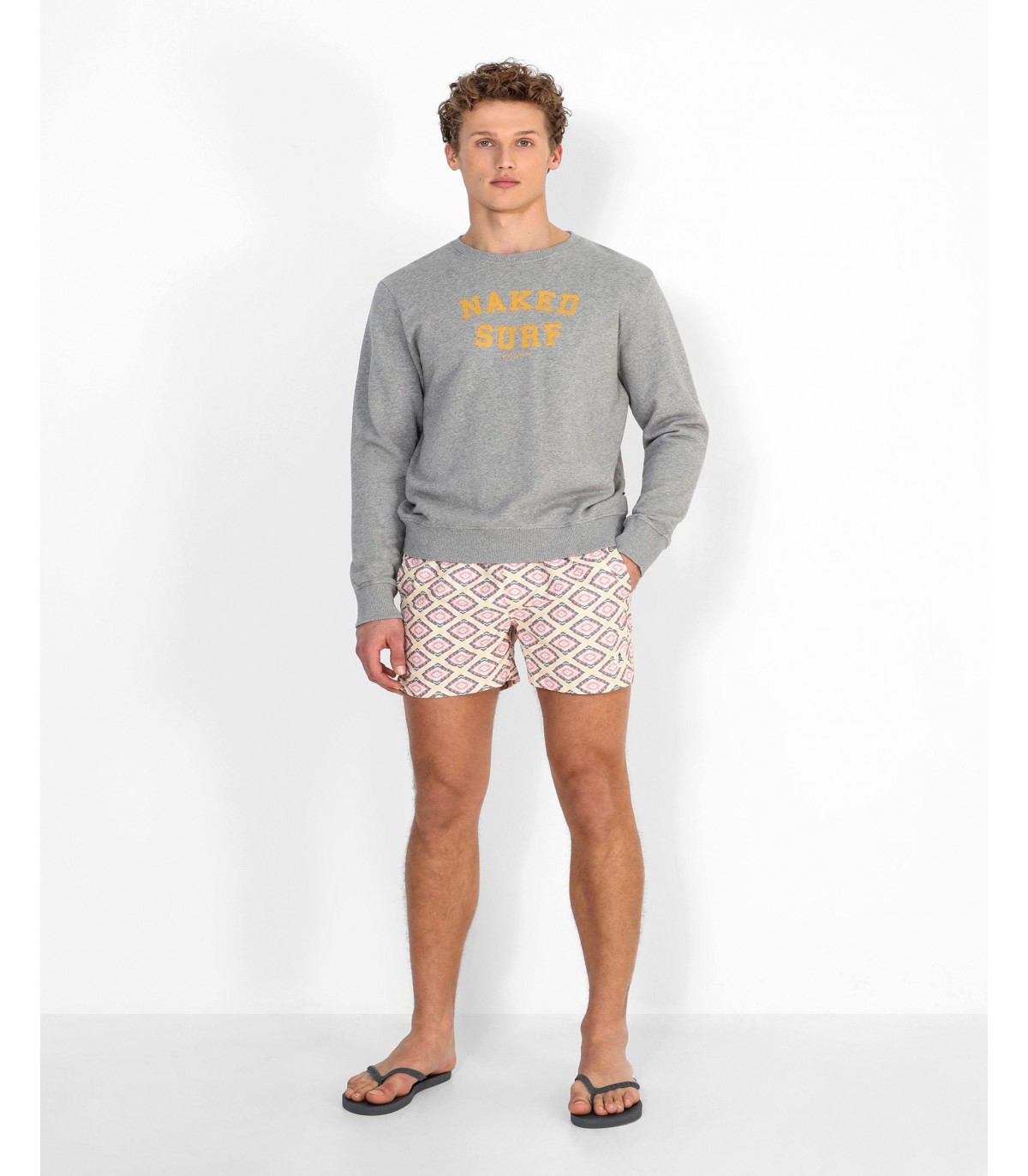 - Bañador con estampado de ikat confeccionado en tejido de poliéster. Corte Regular Fit, cierre con cordón y velcro y detalle de calavera engomada en el bajo.