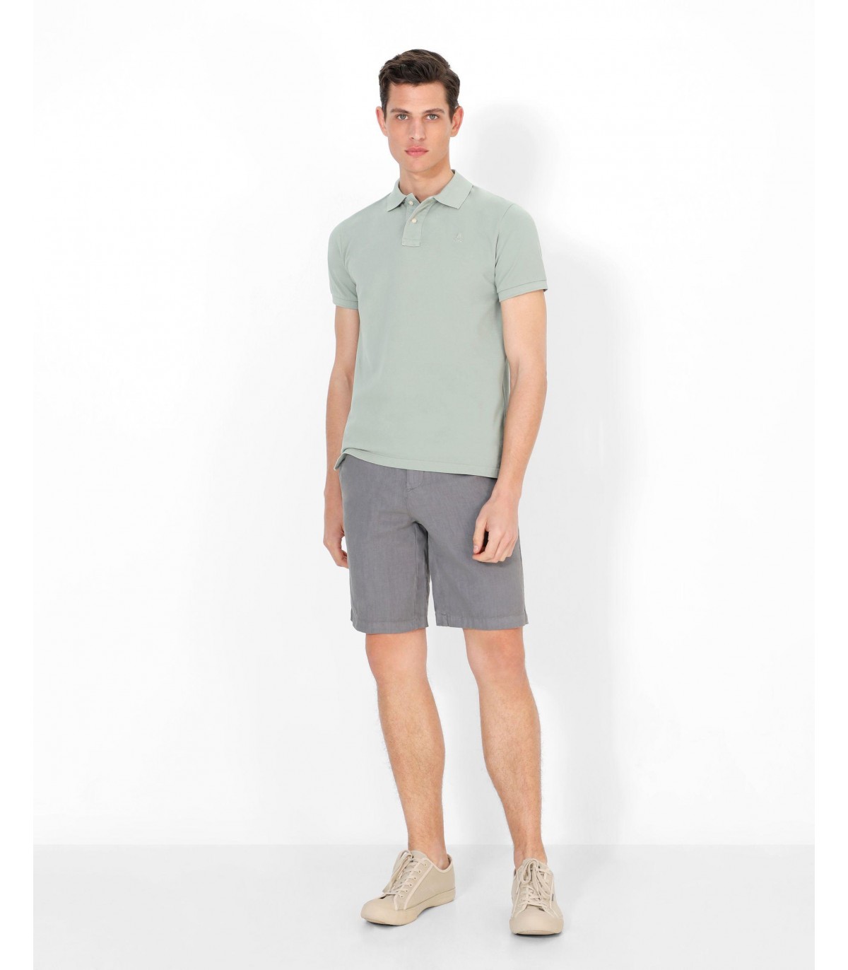 - Bermudas confeccionadas en tejido 100% lino. Corte Regular Fit con cintura con elástico, bolsillos laterales y trasero con botón.