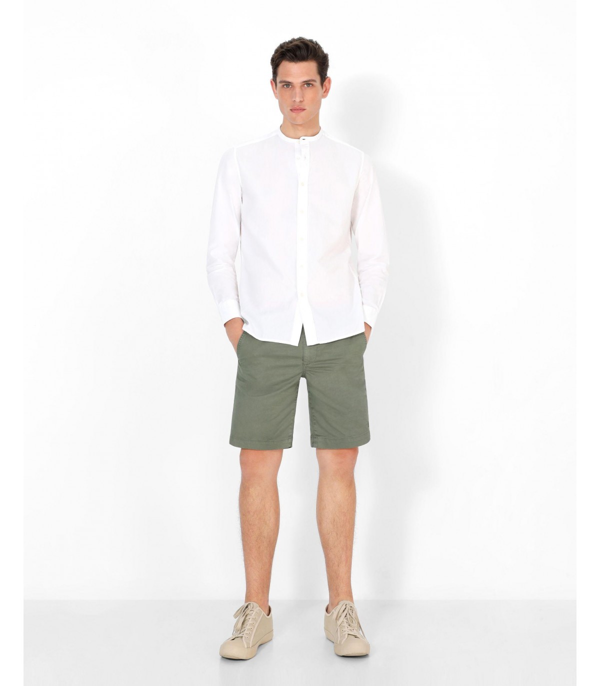 Bermudas confeccionadas en tejido algodón orgánico. Corte Regular Fit y cierre con botón y cremallera. Tiene bolsillos laterales y bolsillos traseros.
