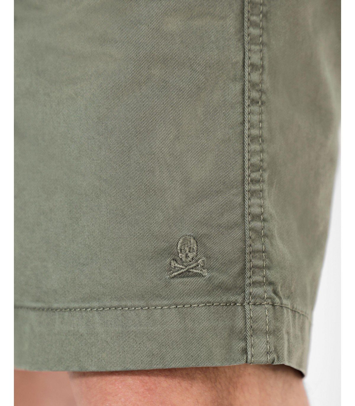 Bañador efecto lavado confeccionada en tejido de poliéster. Corte Regular Fit, cierre con cordón y velcro. Detalle de calavera bordada en el bajo.