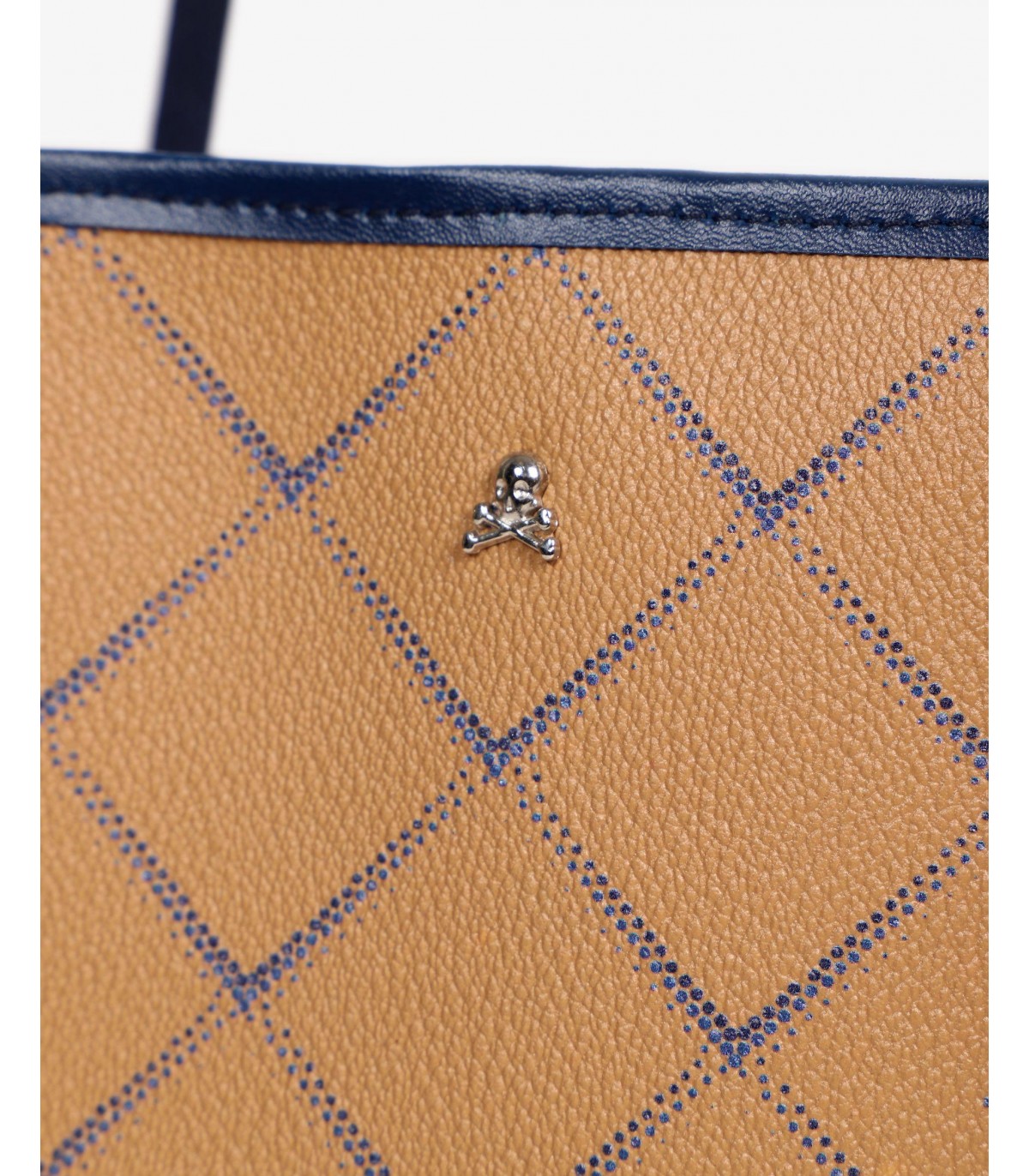 Bolso shopper con estampado de rombo. Asas cortas y bolsillo interior con cremallera. Detalle de tachuela de calavera.