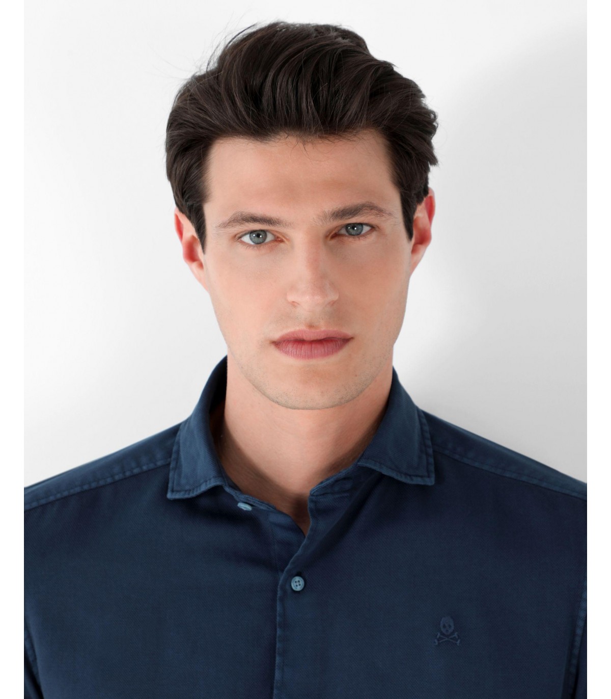 Camisa confeccionada en tejido 100% algodón tipo polo. Corte Regular Fit, cuello cutaway y cierre con botones. Manga larga terminada en puño con botones y detalle de calavera.