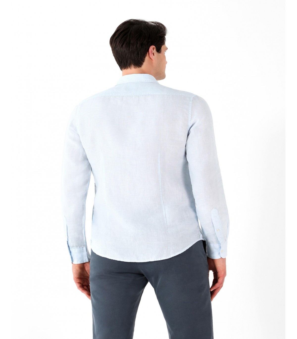 Camisa de cuadros confeccionada en tejido 100% lino. Corte Slim Fit, cuello italiano y cierre con botones. Manga larga terminada en puño con botones.