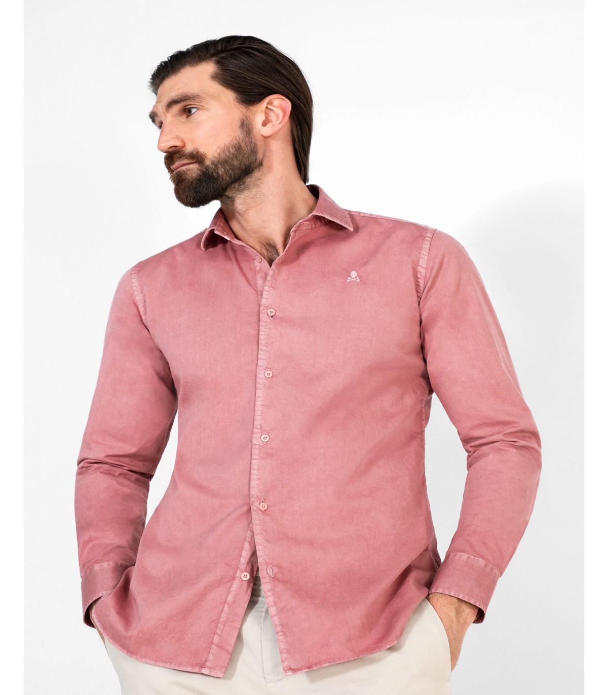 Camisa confeccionada en tejido 100% algodón. Corte Regular Fit, cuello italiano y cierre con botones sin tapeta. Manga larga terminada en puño simple. Detalle de calavera bordada en el pecho.