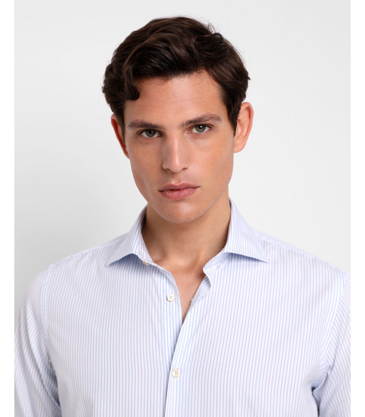 Camisa de vestir confeccionada en tejido 100% algodón. Corte Slim Fit, cuello clásico y cierre con botones. Manga larga terminada en puño con botones.