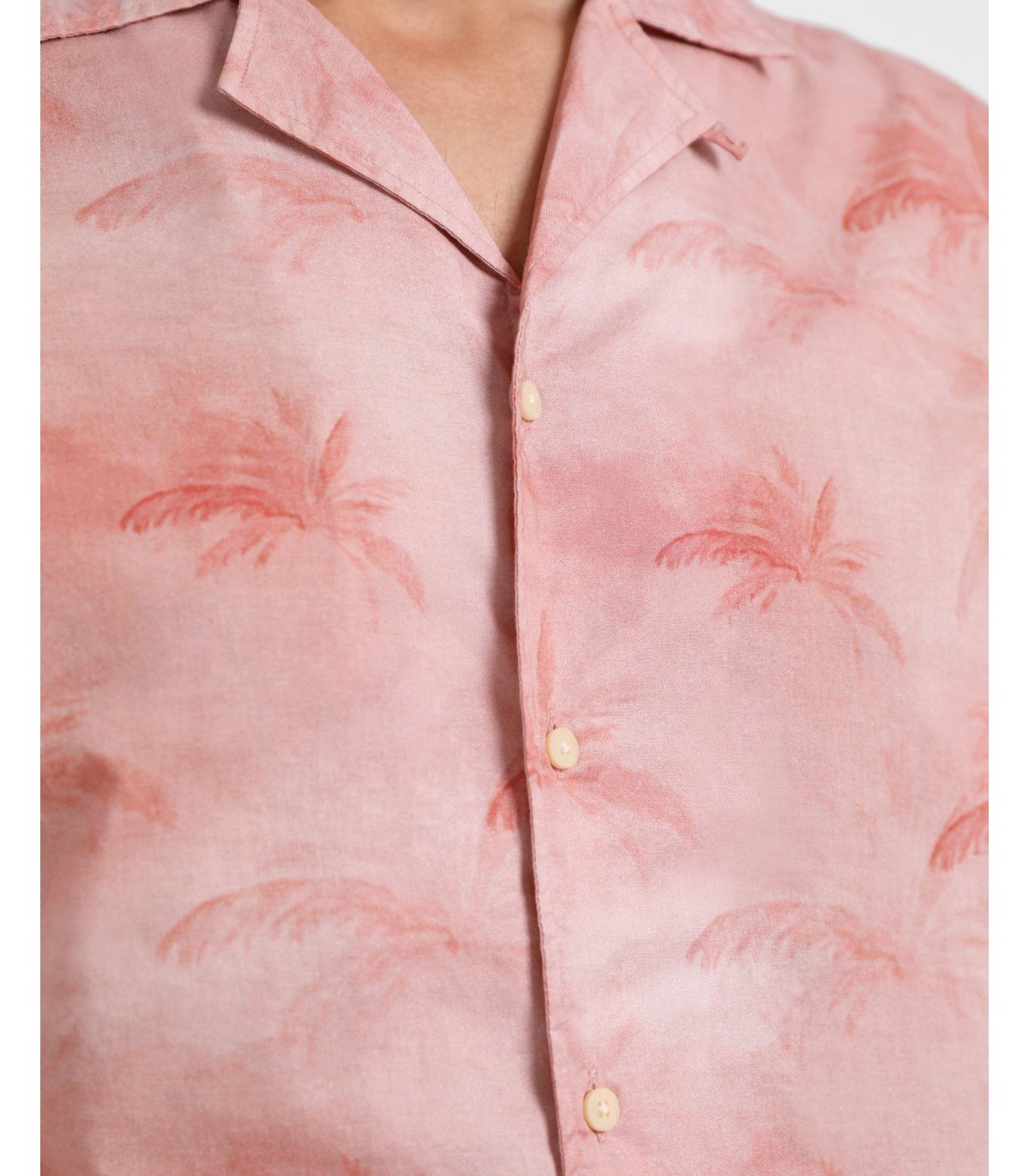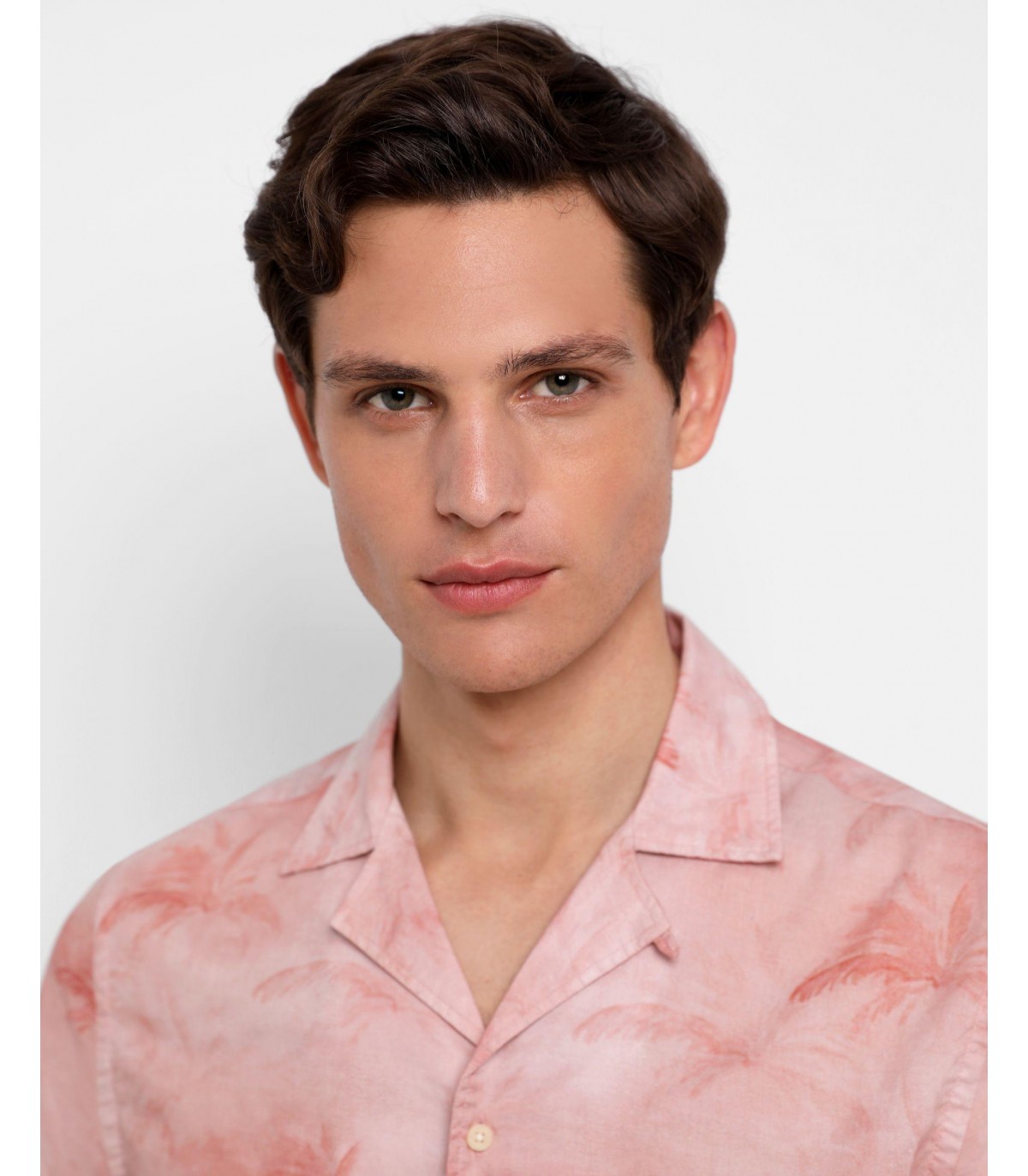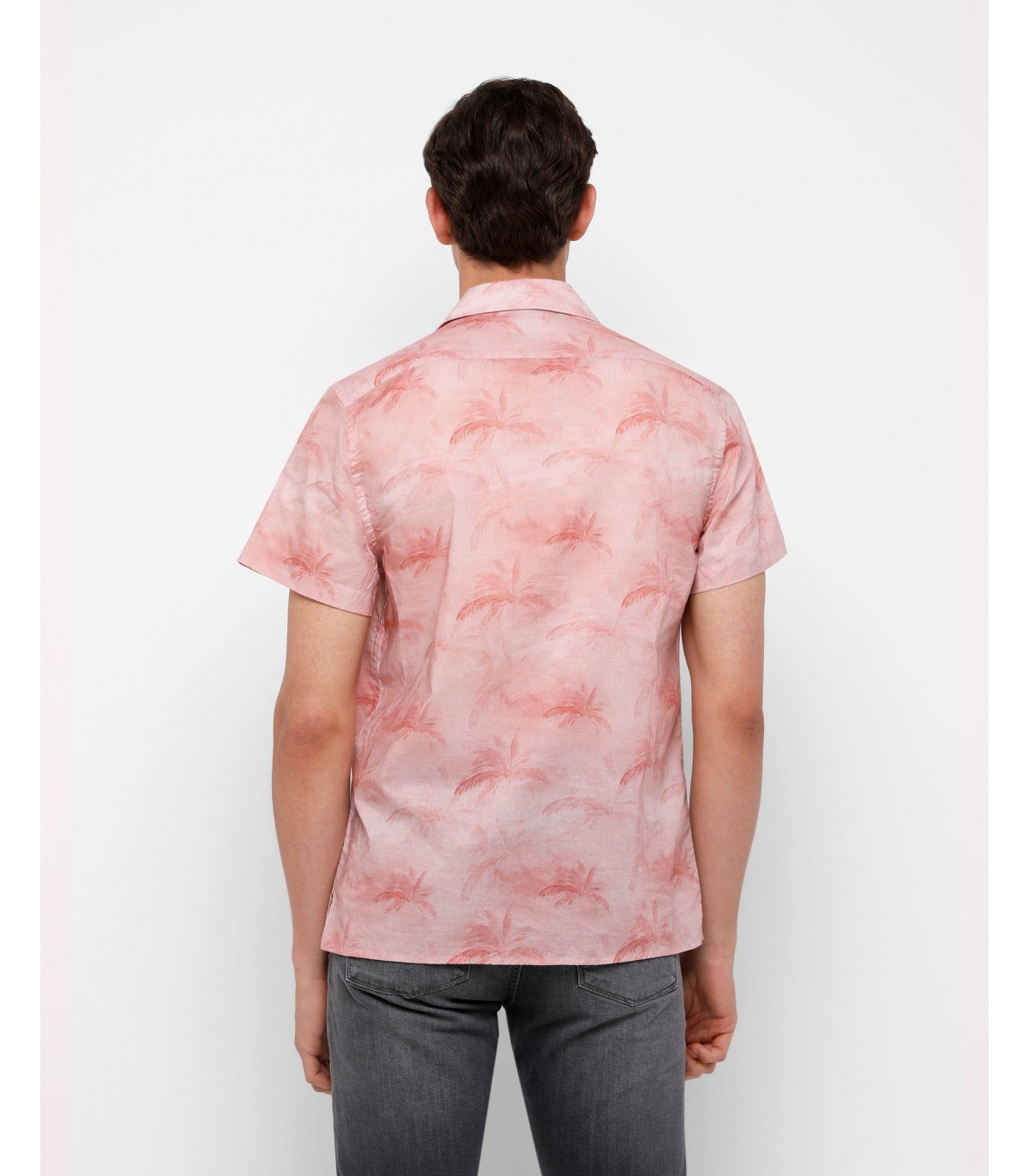 Camisa confeccionada en tejido 100% algodón. Corte Regular Fit, cuello cutaway y cierre con botones. Manga corta y dibujo palmeras.