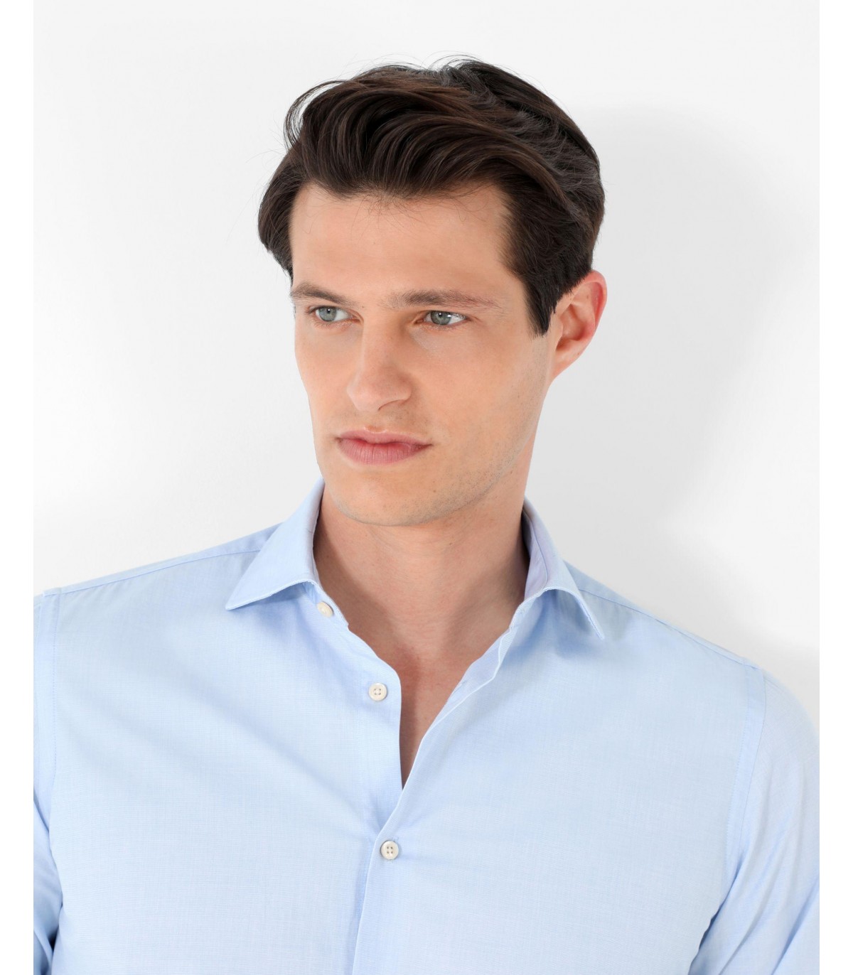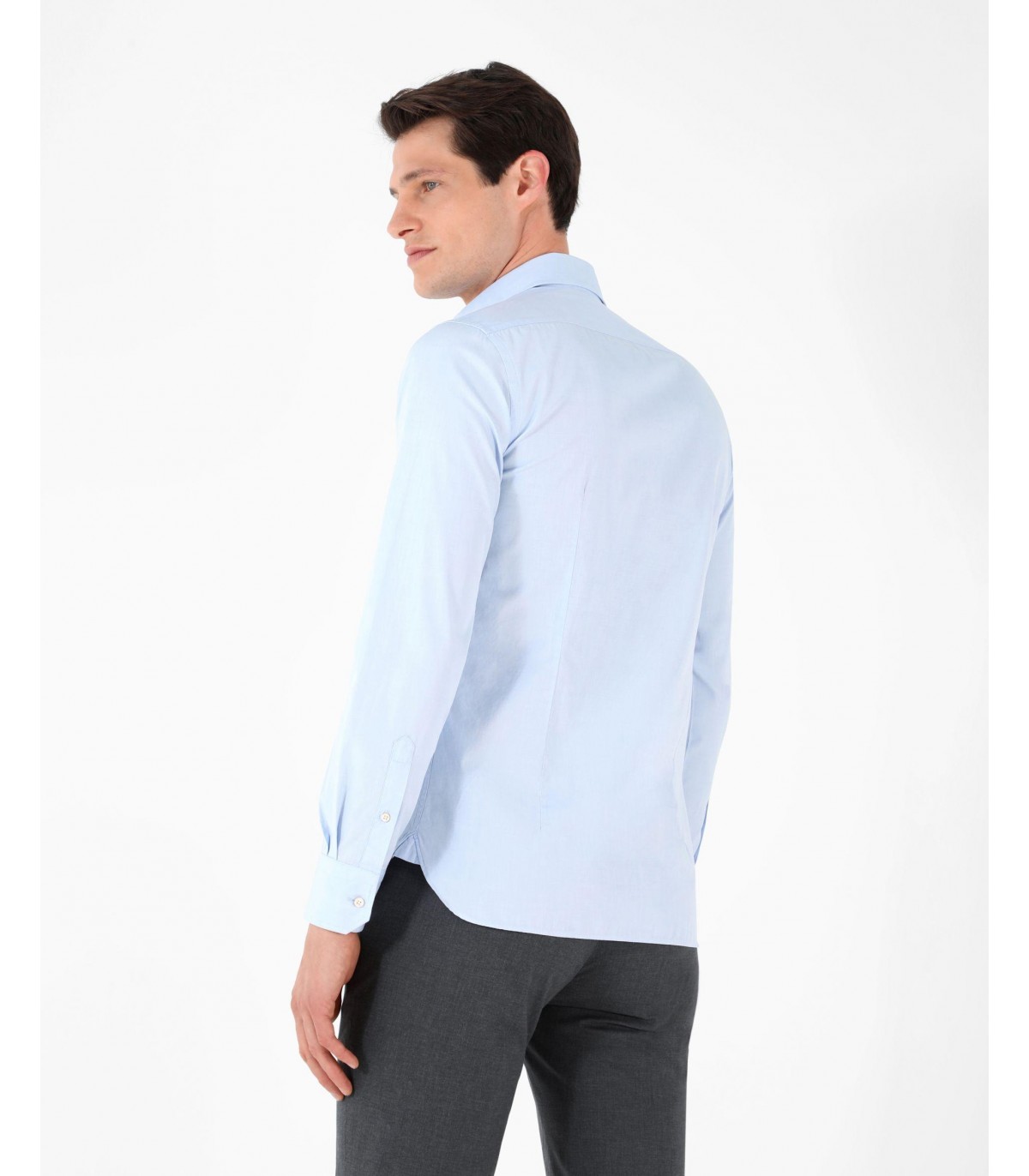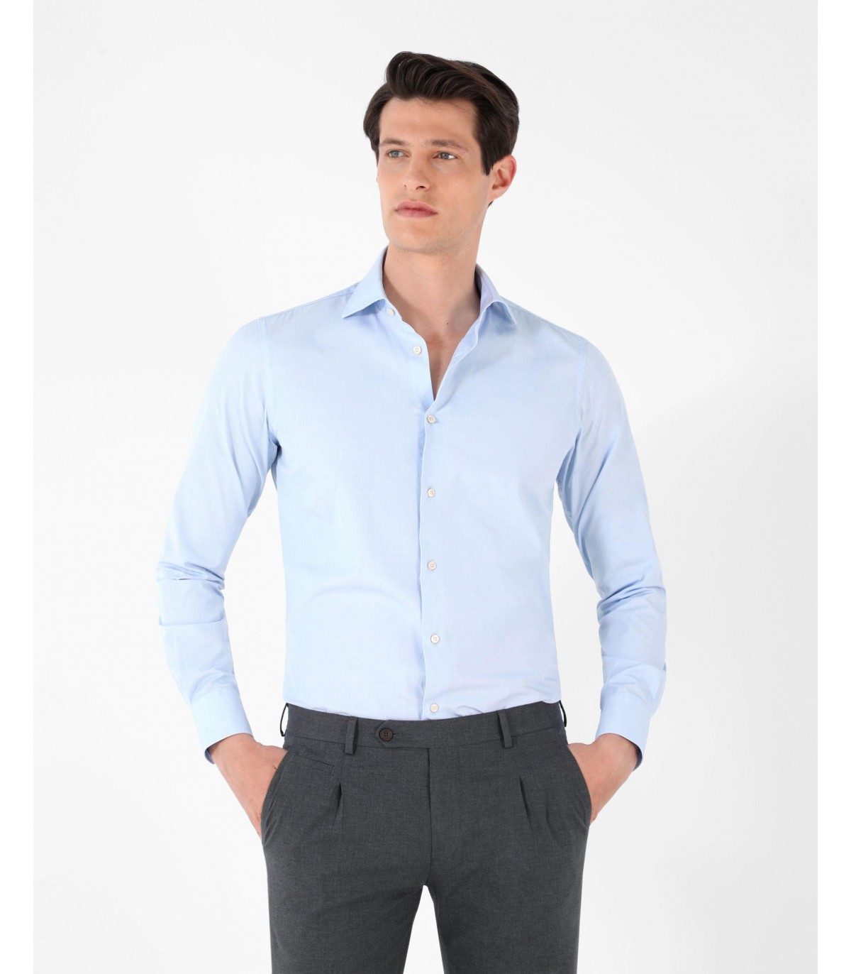 Camisa de vestir confeccionada en tejido 100% algodón. Corte Slim Fit, cuello clásico y cierre con botones. Manga larga terminada en puño con botones.