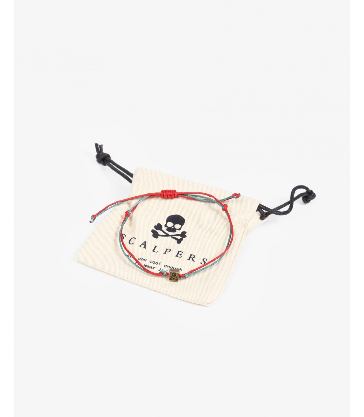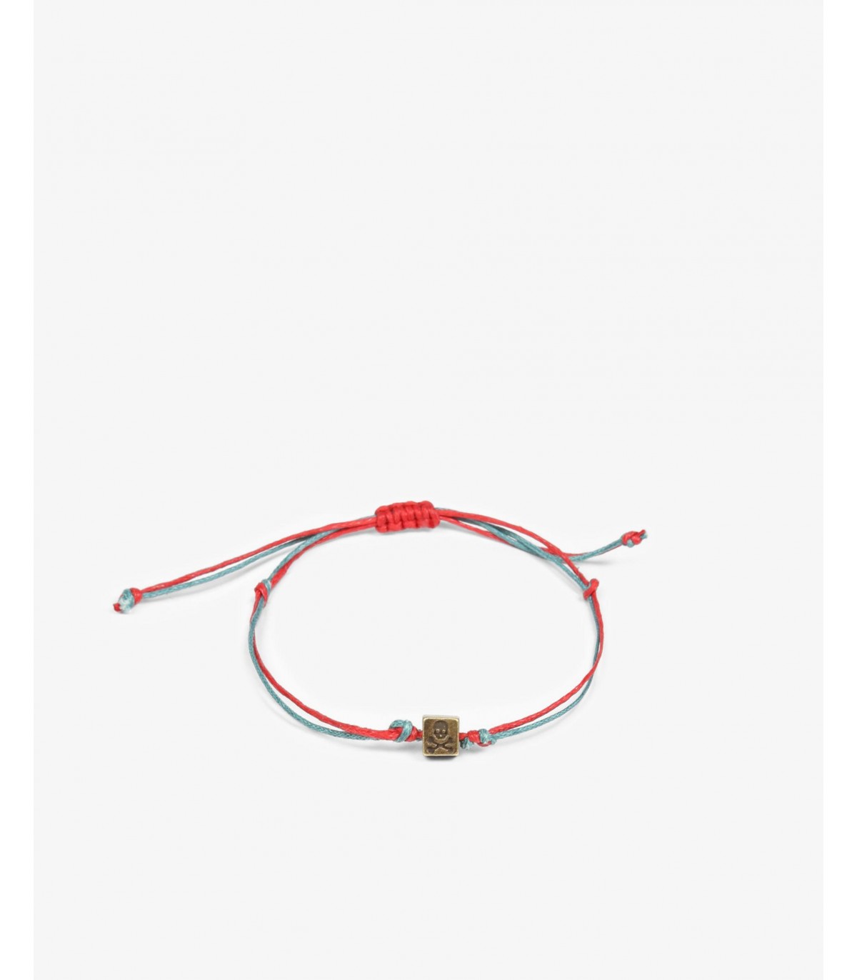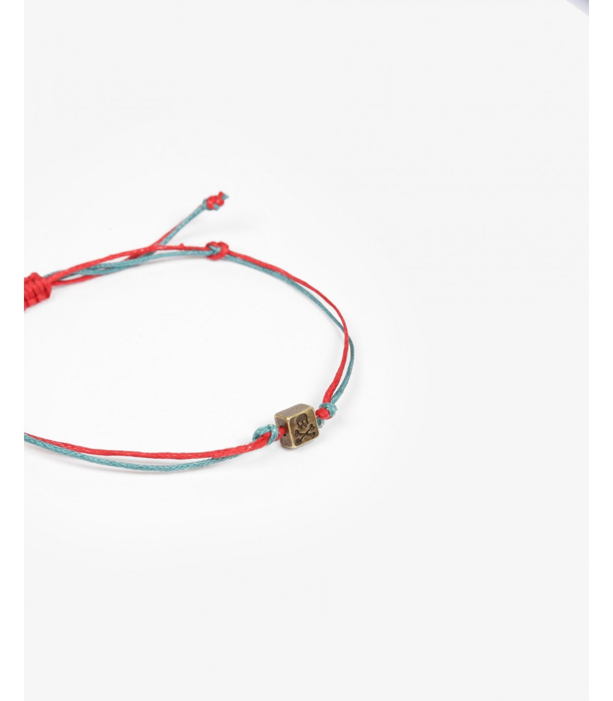 Pulsera de cordón ajustable con detalle de latón con calavera.