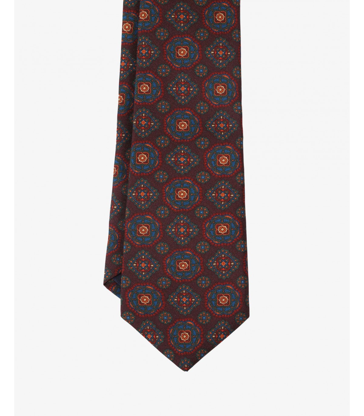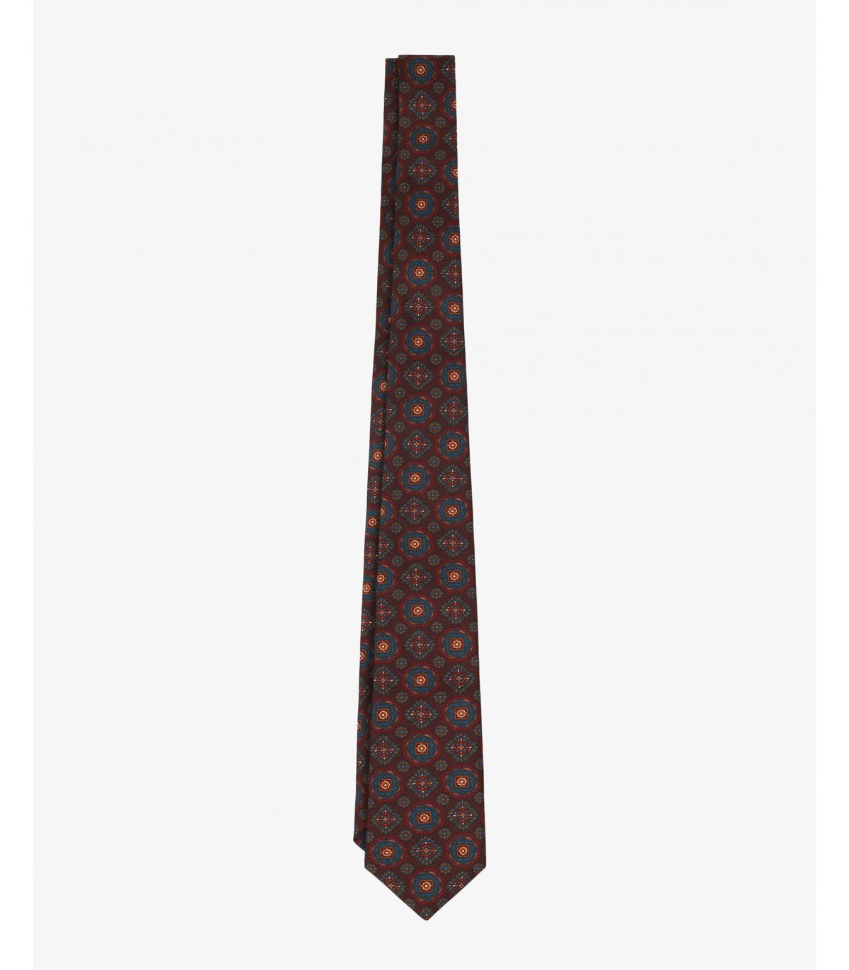 Corbata con estampado circular confeccionado en tejido 100% seda.