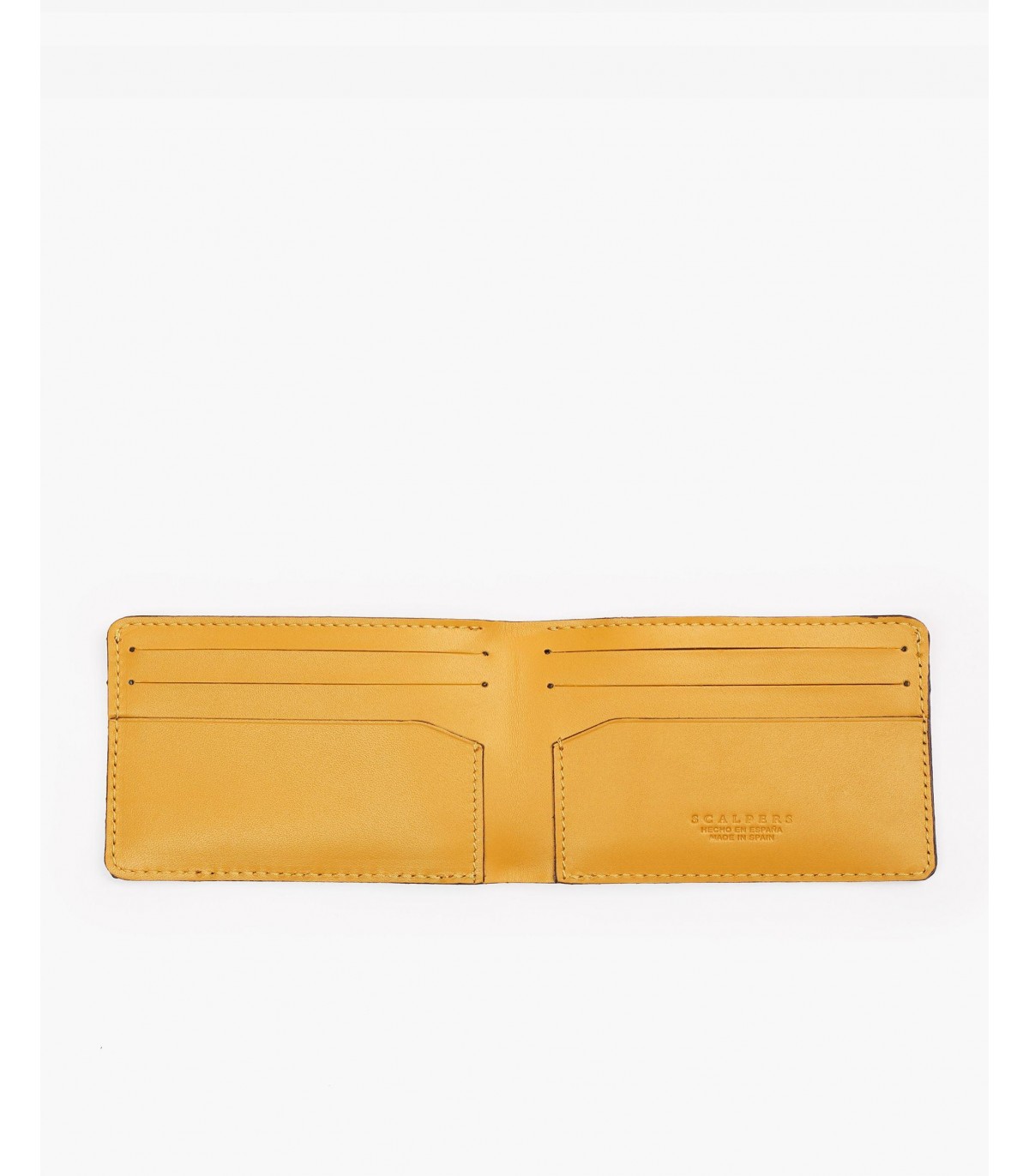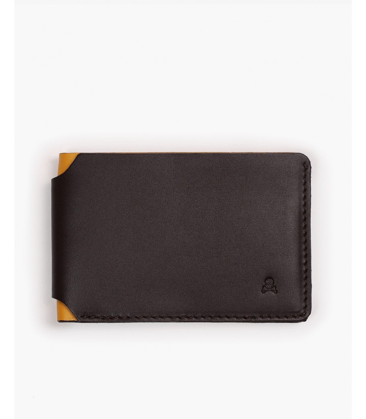 Cartera confecciona en tejido 100% piel. Ranura para tarjetas internas a contraste. Detalle de calavera grabada.