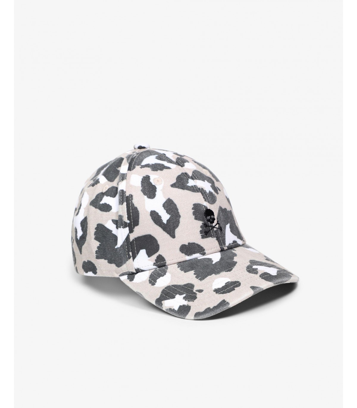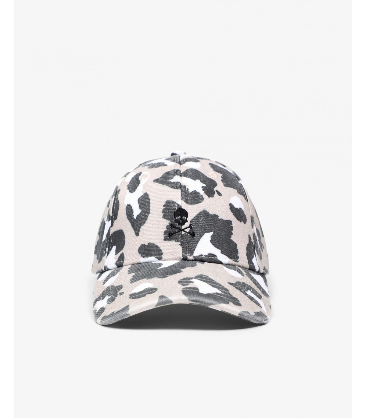 - Gorra con estampado animal print confeccionada en tejido 100% algodón. Cierre ajustable trasero y detalle de calavera bordada.