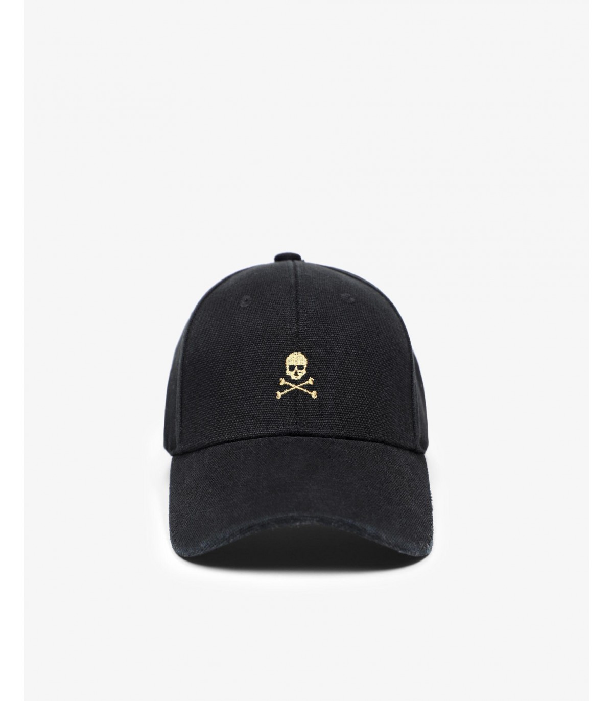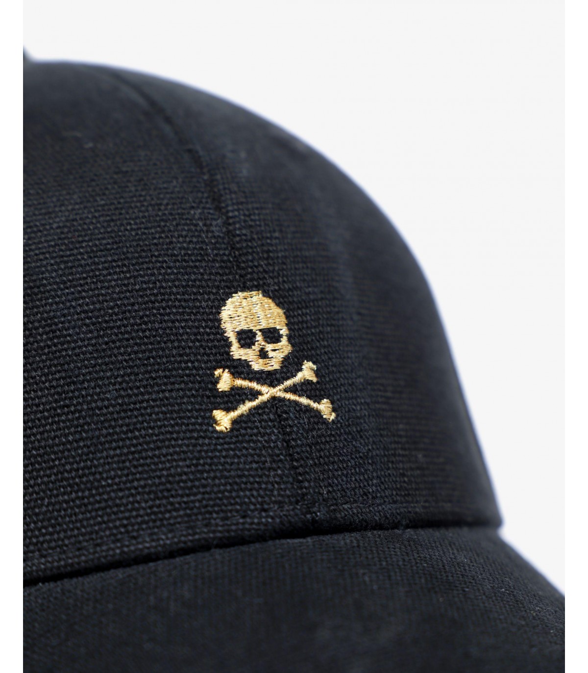 Gorra confeccionada en tejido 100% algodón. Cierre ajustable trasero y detalle de calavera y logo a contraste.