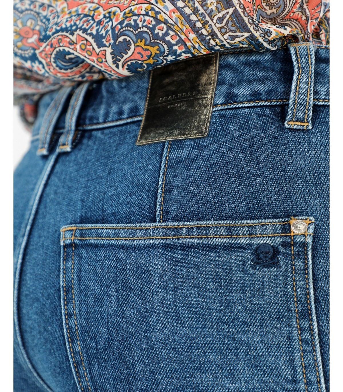 Jeans confeccionados en tejido 100% algodón. Corte Ankle Flare con tiro medio, cierre con botón y cremallera y bolsillos delanteros y trasero. Detalle de bajo desflecado.