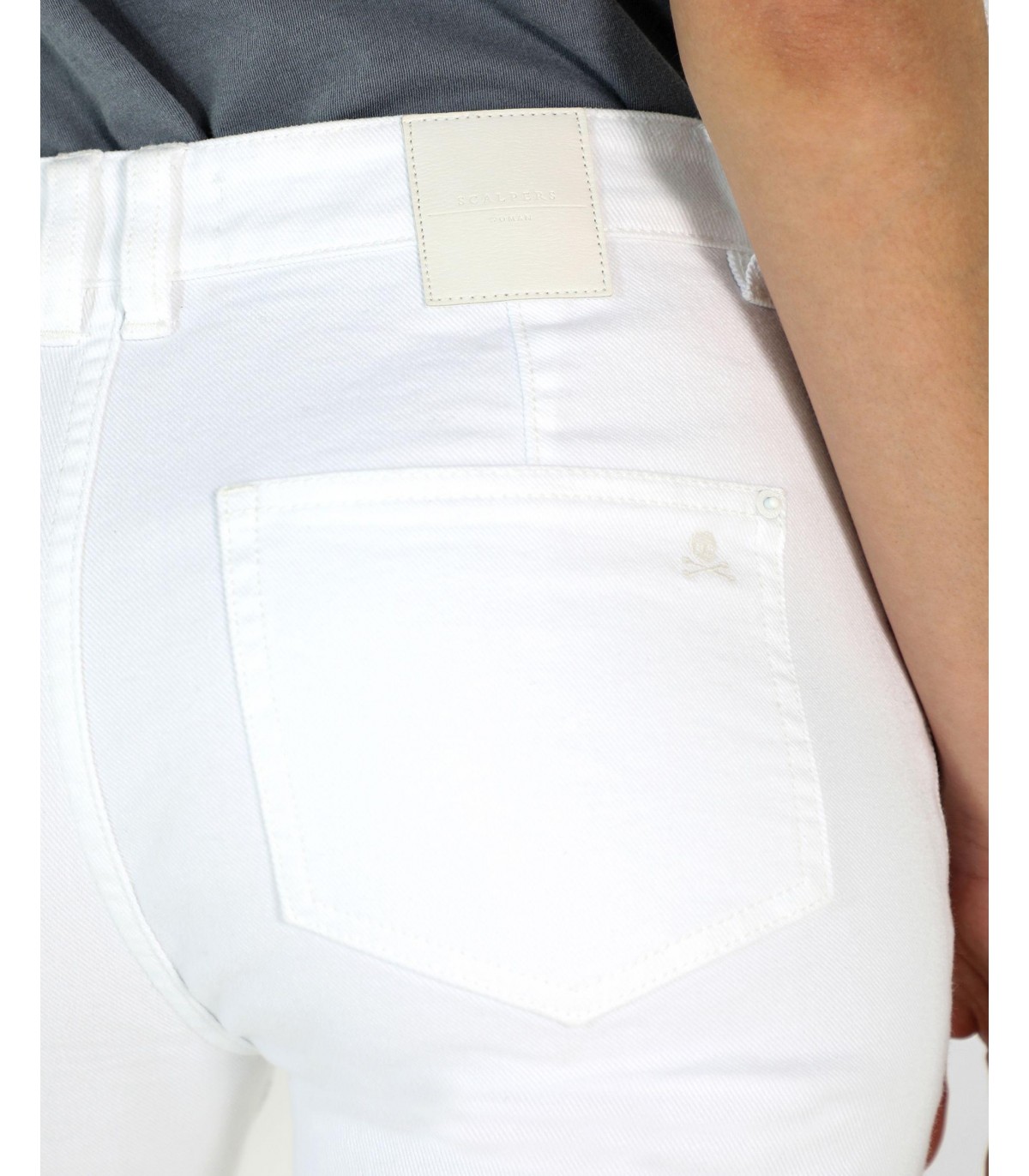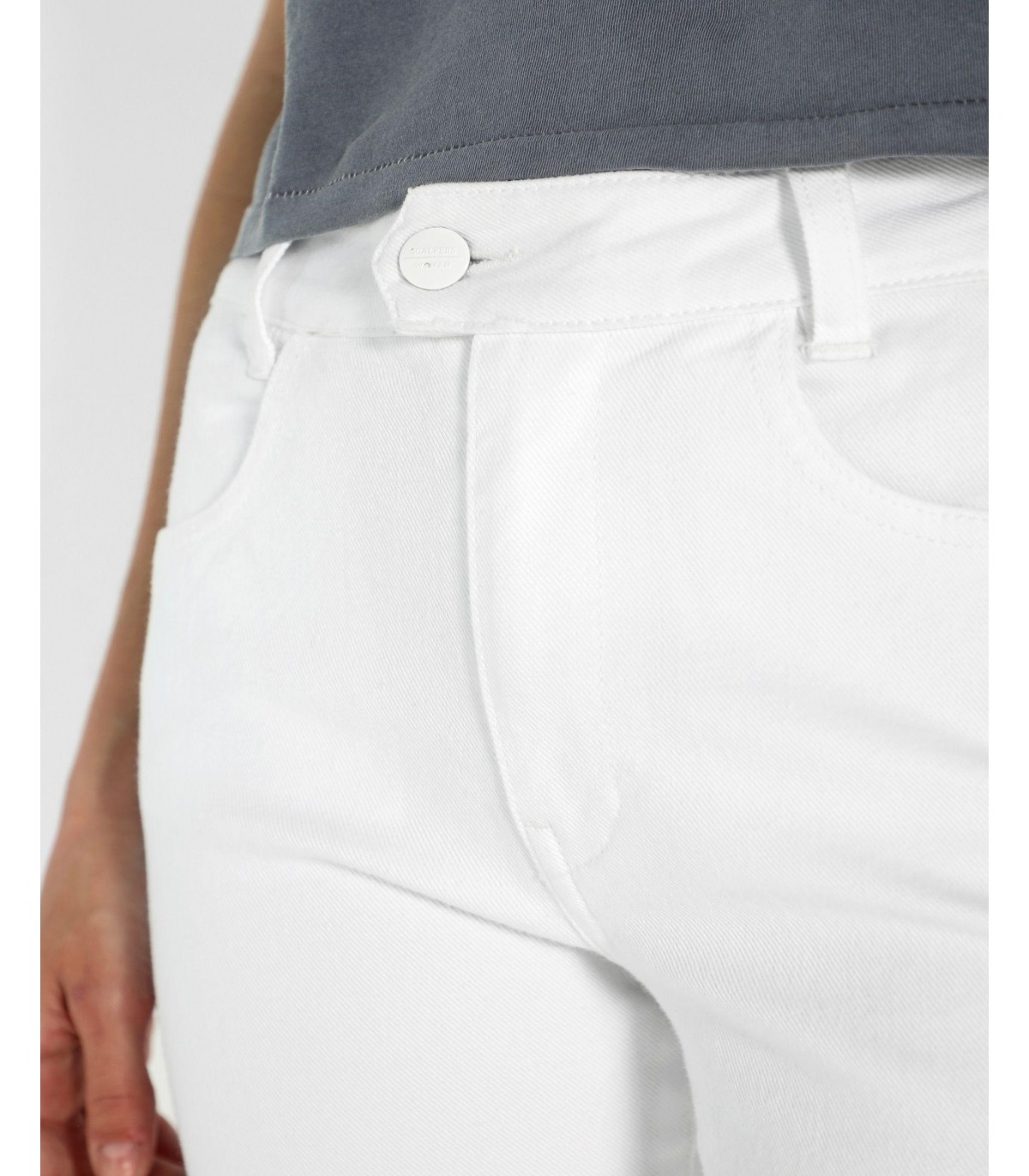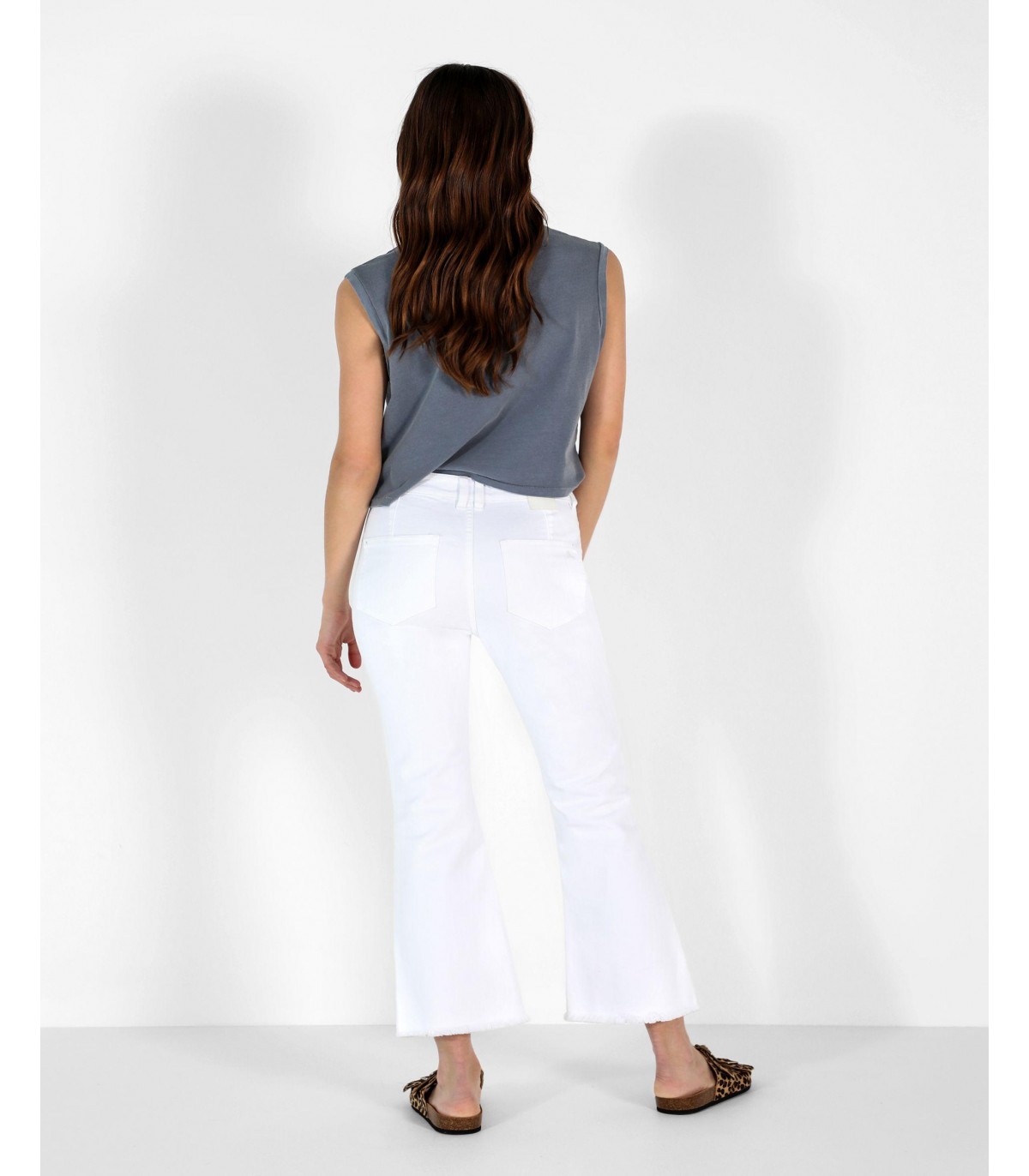 Jeans confeccionados en tejido 100% algodón. Corte Ankle Flare con tiro medio, cierre con botón y cremallera y bolsillos delanteros y trasero. Detalle de bajo desflecado.