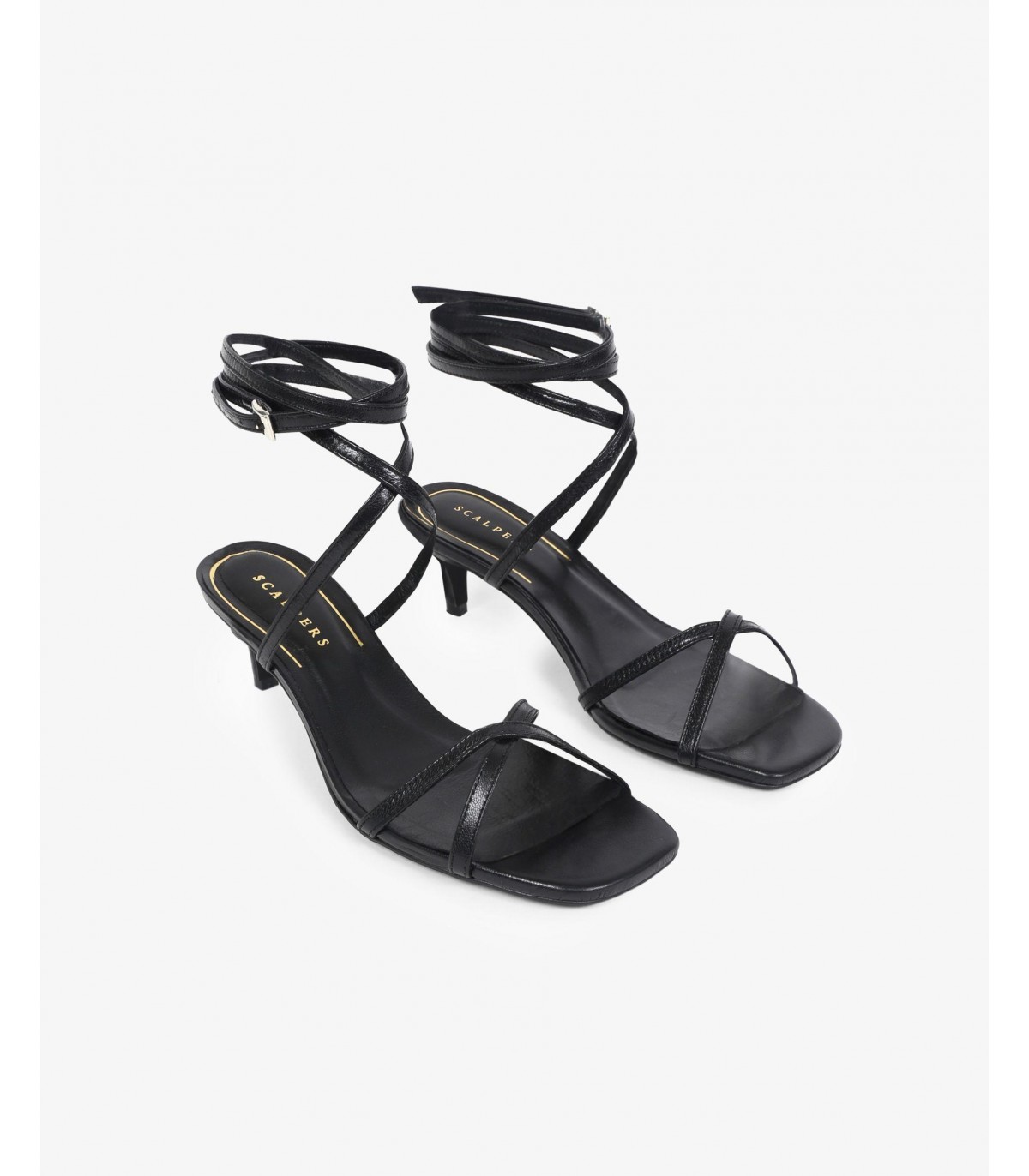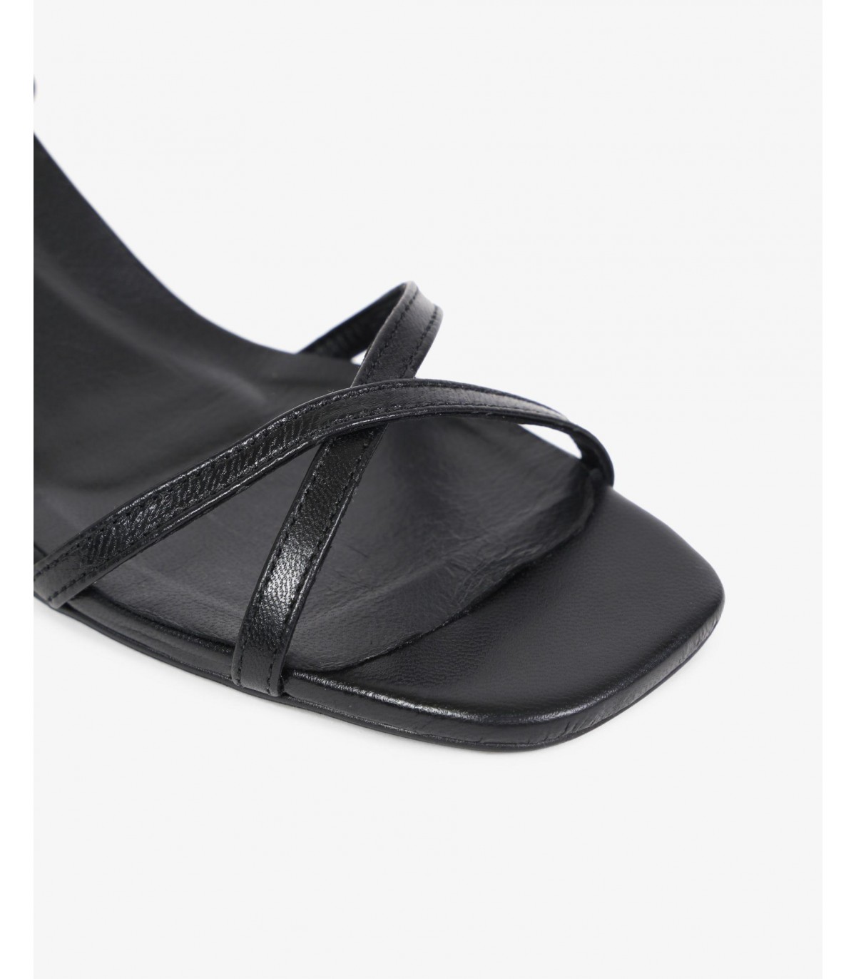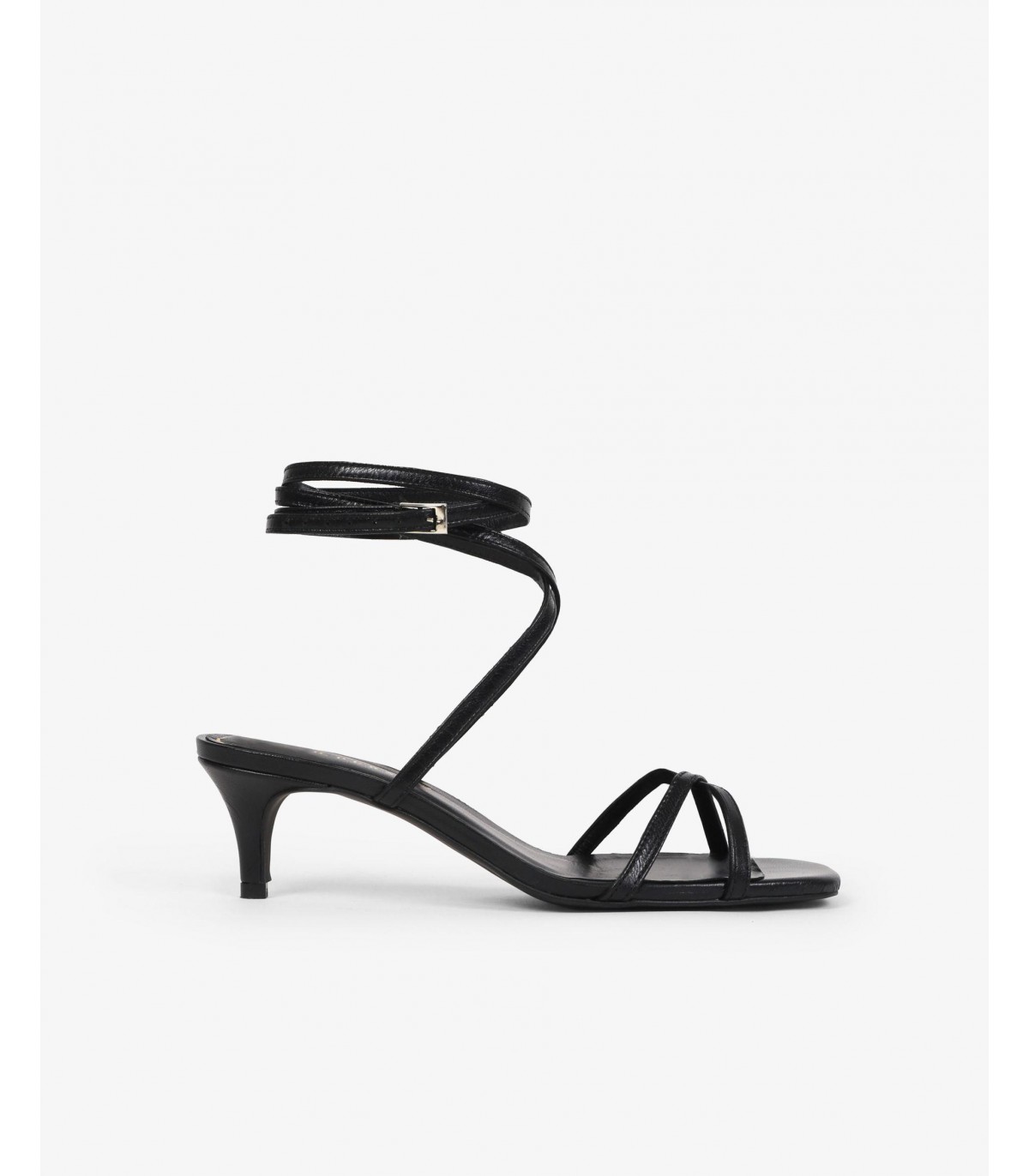 Sandalias con tacón confeccionadas en piel. Doble tira al tobillo con cierre de hebilla y doble tira delantera. Suela de goma.