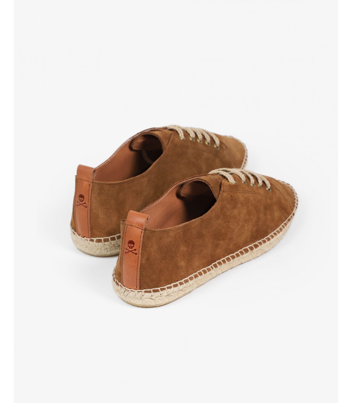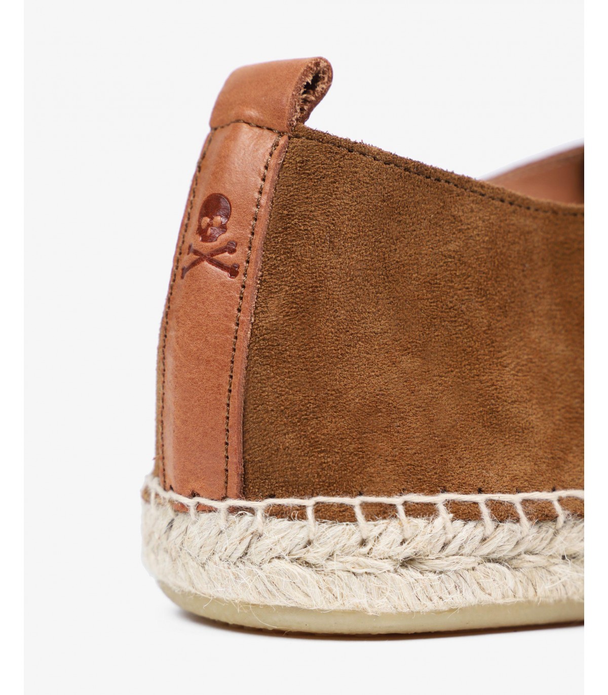 - Alpargatas confeccionadas en tejido de piel terminada en ante. Cierre con cordones, suela de yute y goma y detalle de piel en la parte trasera con calavera grabada.